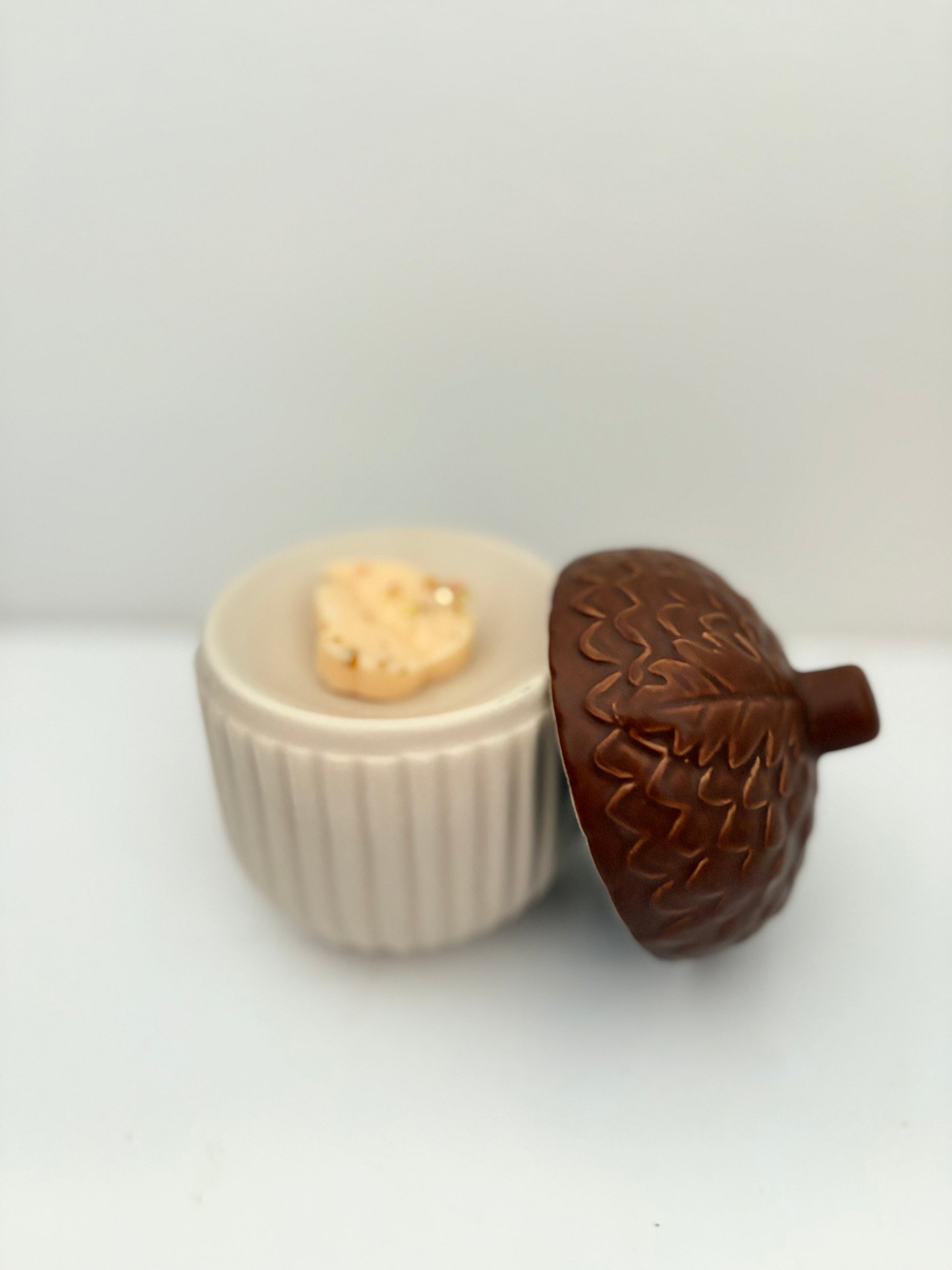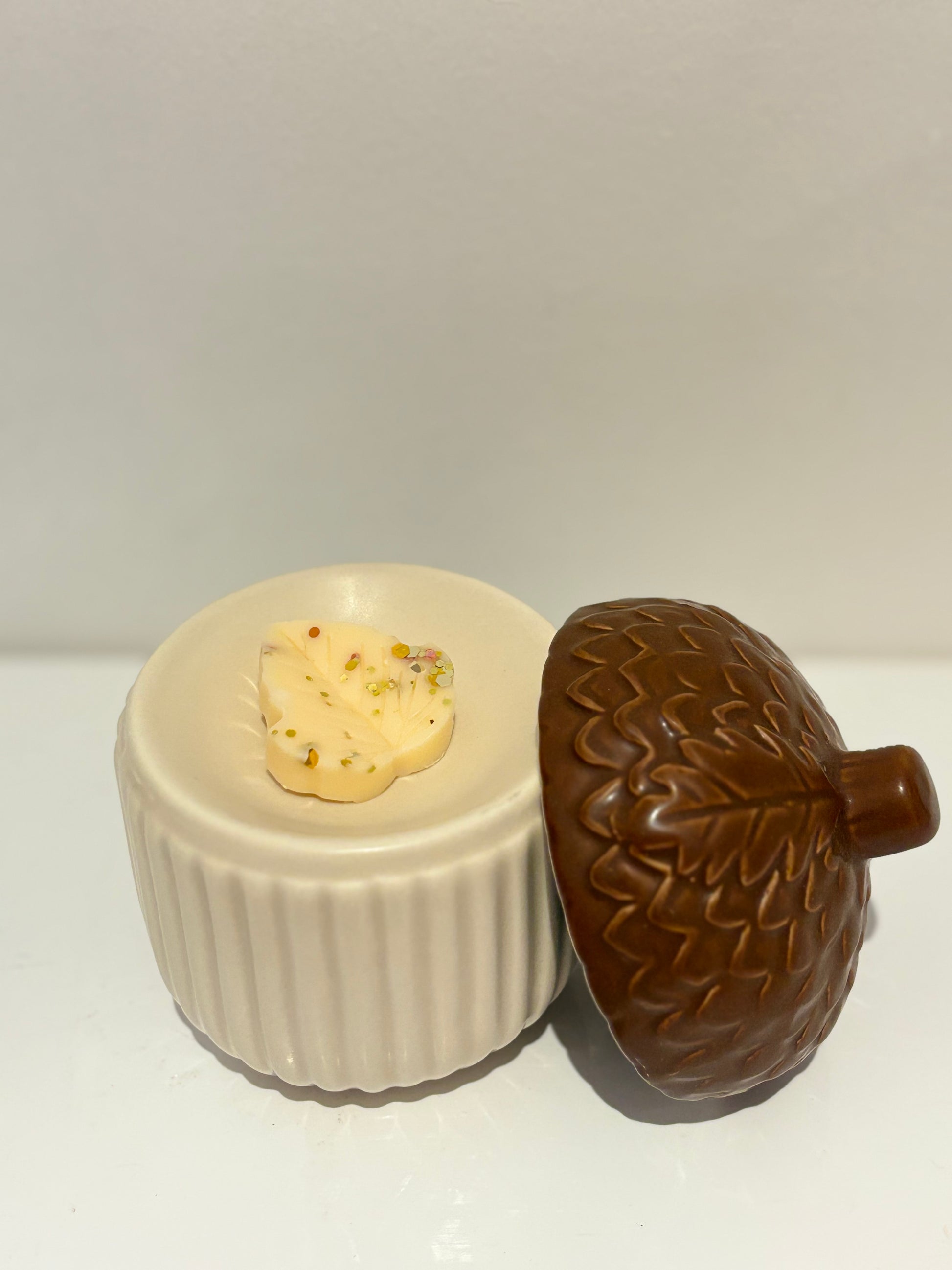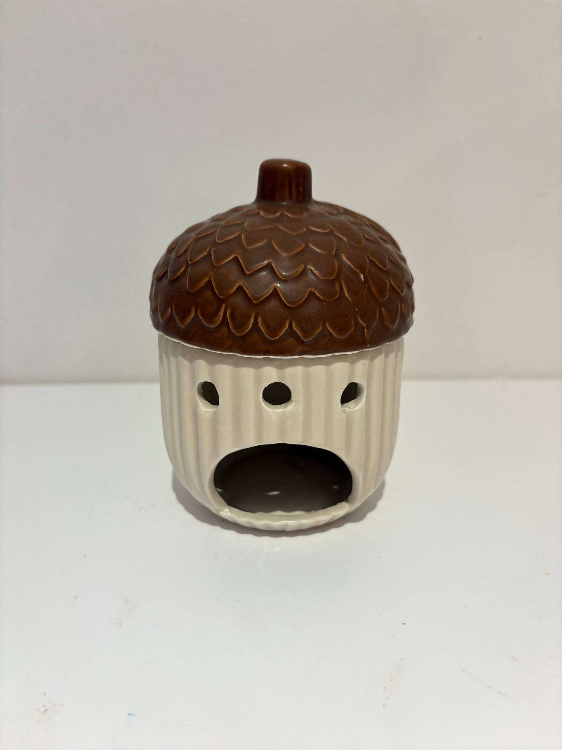 Introducing the Acorn Autumn burner, a beautiful wax burner with a unique design inspired by acorns. Perfect for adding a cozy and decorative touch to any room, while efficiently melting wax for a long-lasting fragrance experience. Bring the warmth of autumn into your home with the Acorn Autumn burner.